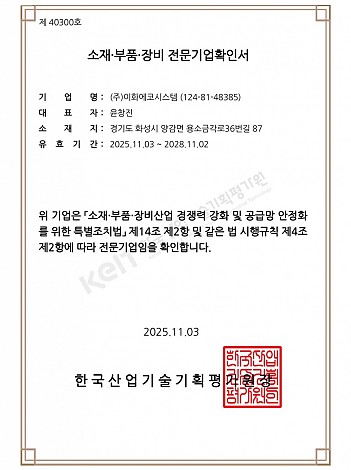 업체명 : (주)이화에코시스템